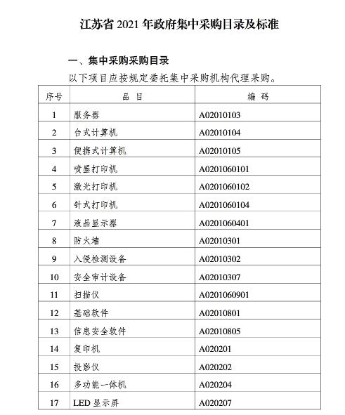 - 江苏省2020年省级政府集中采购目录及限额标准2020-05-13