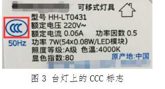 台灯被纳入国家强制性产品认证目录,必须通过CCC认证且加贴CCC标志才能出厂销售。目前对于不带电池的读写台灯,只有加贴了CCC标志的产品,才能表明产品符合了电气、机械等安全要求,即符合国家标准GB 7000.204和GB 7000.1的要求,可以安全使用。图3中的即是CCC标志。