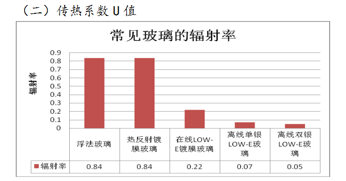 U值反映的是:因对流传导而透过玻璃的热能,其中包括玻璃吸收热能后再向外辐射的传递。因此,玻璃的辐射率E低,U值相应地就低。