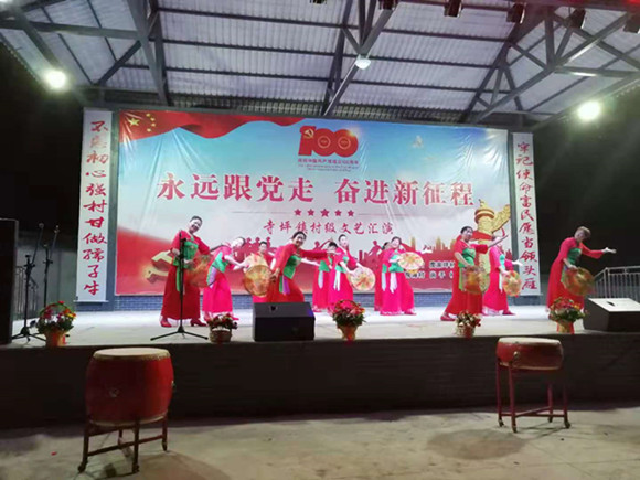 6月30日,由保康县财政局全力协调,台子包村、庹家坪村、岗子村和瓦房滩村联合举办的“永远跟党走.奋进新征程”庆祝中国共产党成立100周年文艺晚会在台子包村党群服务中隆重举行,把驻村的党史学习教育推向高潮。